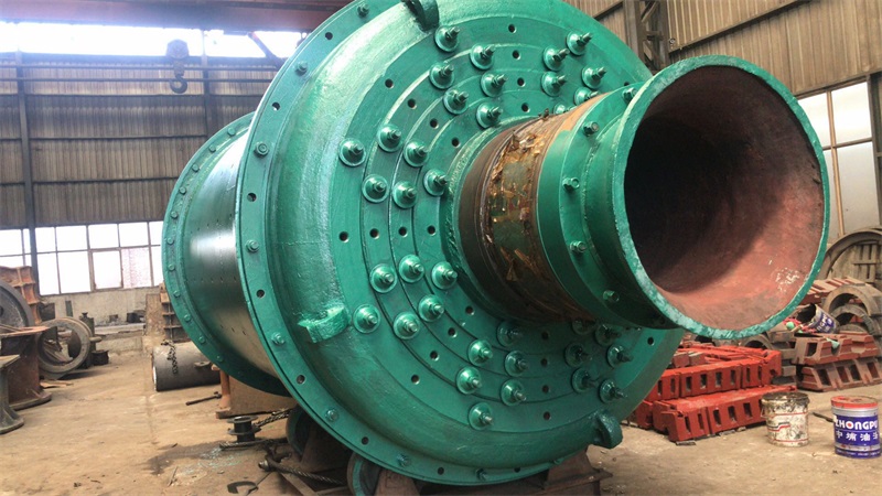 溢流型球磨機(jī)筒體用厚度15-36mm的鋼板焊接而成,在筒體的兩端焊有鑄鋼制造的法蘭盤,用螺栓將端蓋2和3與法蘭盤連接在一起,二者須精密加工和配合,因?yàn)槌休d磨礦機(jī)質(zhì)量的中空軸頸焊在端蓋上。在筒體上開有1-2個(gè)人孔,供檢修和更換襯板用。筒體和端蓋內(nèi)部敷設(shè)有襯板5。端蓋上的中空軸頸支承在主軸承4上。主軸承常用的是滑動(dòng)軸承,其直徑很大,但長(zhǎng)度很短。軸瓦用巴氏合金澆鑄,與一般滑動(dòng)軸承不同之處在于僅僅下半部有軸瓦。整個(gè)軸承除軸瓦用巴氏金澆鑄外,其余用鑄鐵制成。由于球磨機(jī)的跨度和載荷很大,將發(fā)生一定程度的撓曲,而且制造和裝配的誤差也難以保證準(zhǔn)確的同心度,因此主軸承制成自動(dòng)調(diào)心滑動(dòng)軸承,為防止軸瓦轉(zhuǎn)位過(guò)大而從軸承座中滑出,在軸承座與軸瓦的球面***放一圓柱銷釘。
